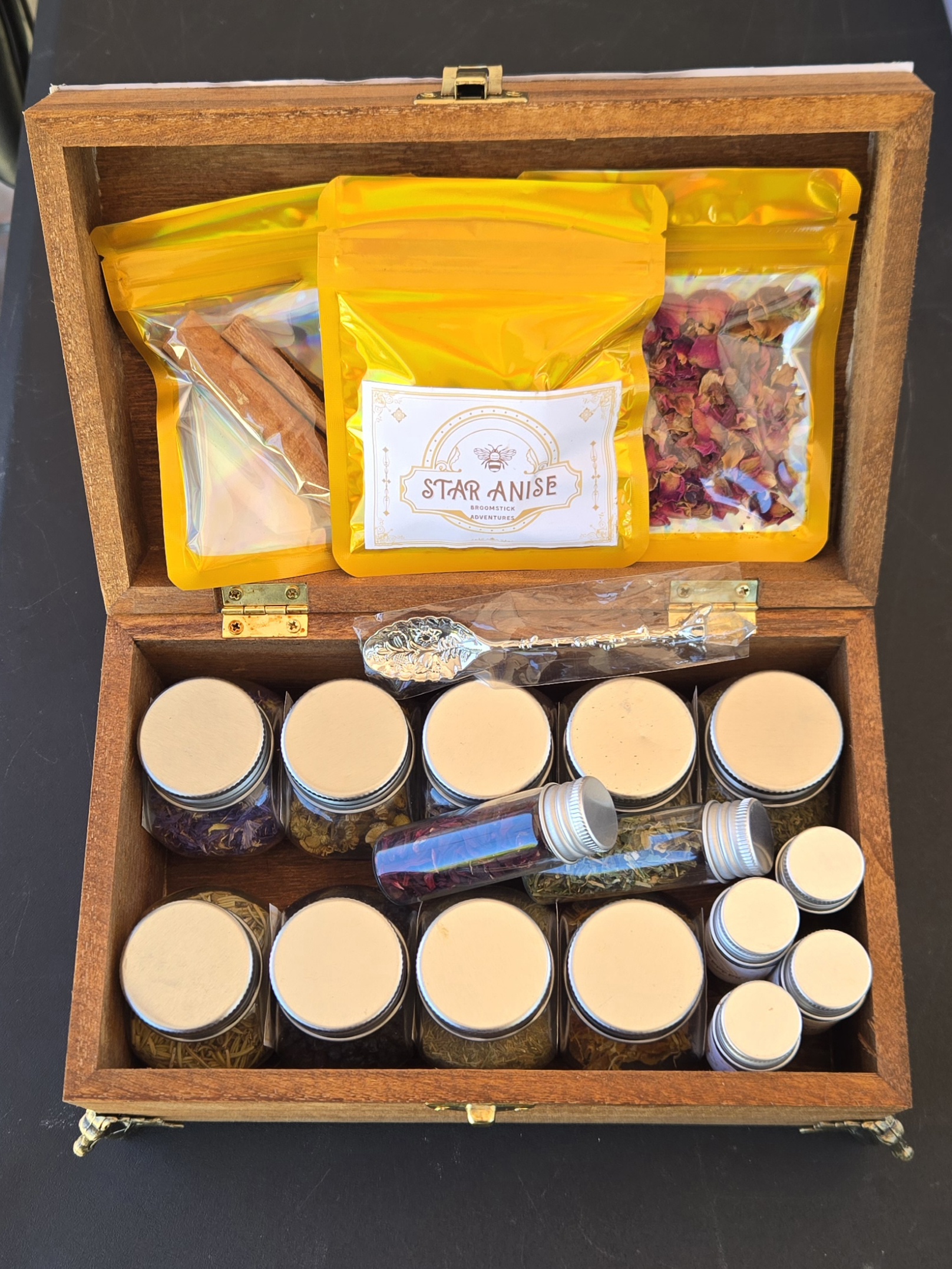 - 3 packets: Star Anise, Rose Petals, Cinnamon