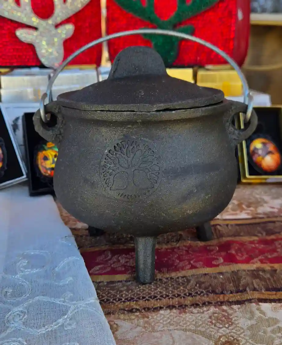 A cast iron cauldron